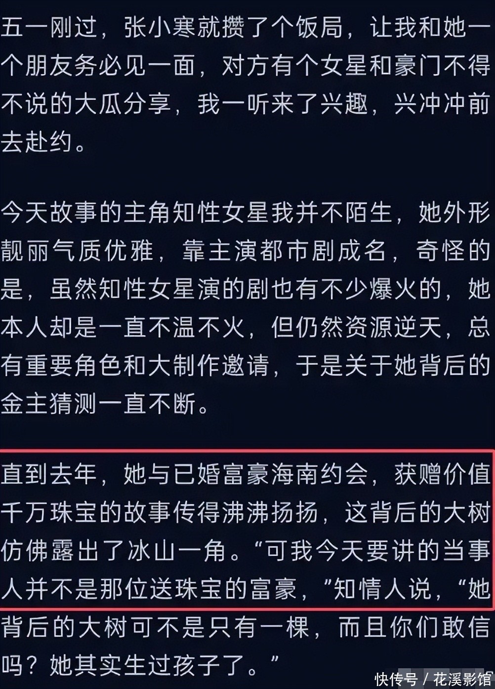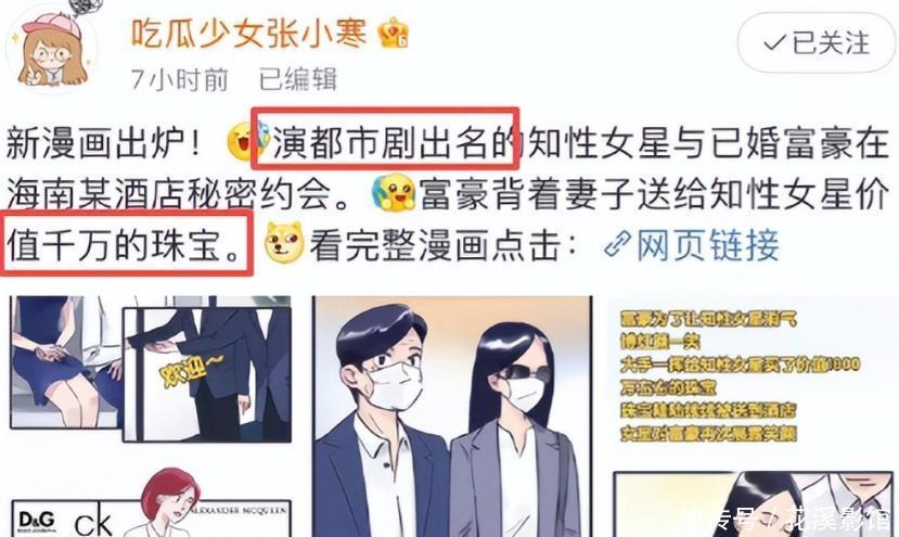 2022 年张小寒发漫画,说 “知性女星和已婚富豪在海南约会,获赠千万珠宝”。