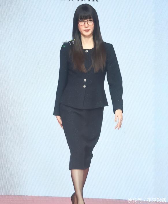 当天,她没穿仙气飘飘的礼服,而是剪了齐刘海,戴了副圆框眼镜,穿件简单的黑长裙,活脱脱 “麻辣女教师” 的模样。